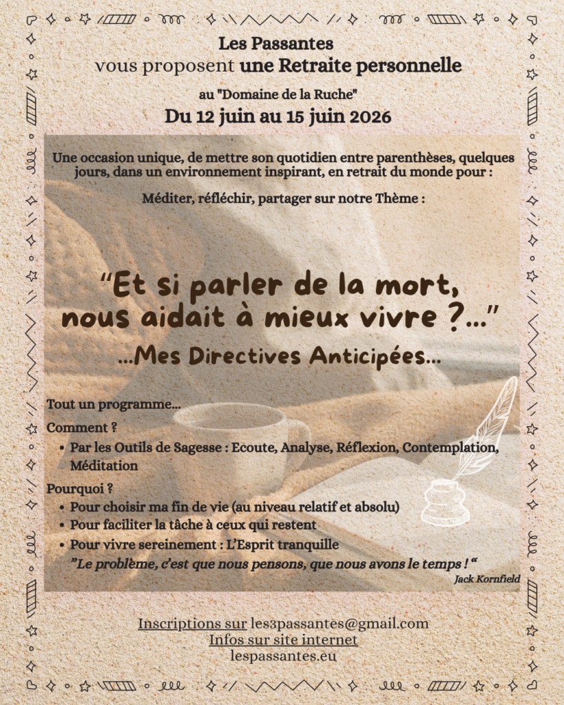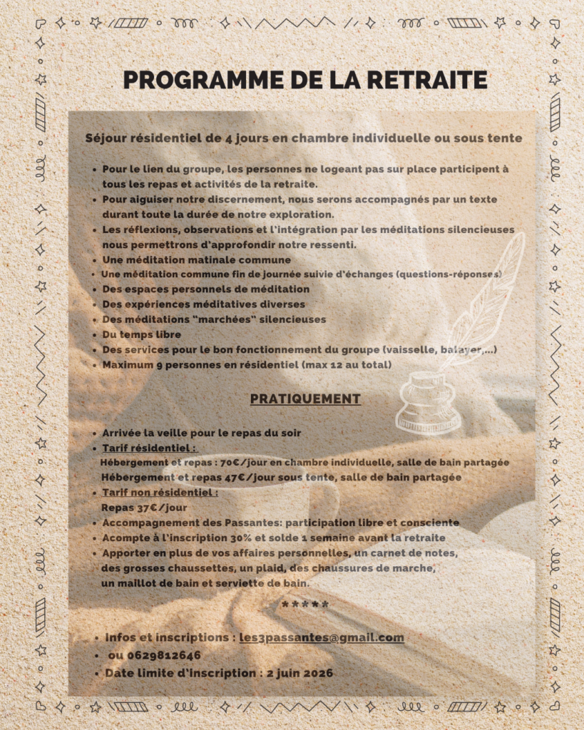« Les Passantes » sont heureuses de vous accueillir pour leur retraite-méditation annuelle à Grane : un entracte intimiste pour vraiment prendre soin de soi.